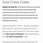 https://www.pokemoncoders.com/pokemon-gaia-cheats/ 위에 사이트에 접속하시면 코드 목록이 있습니다. 원하는 치트를 찾으시고 마스터코드와 치트코드를 둘다 따로 입력해 주셔야지 가능합니다. 그리고 안타갑게도 현 시점인 1월 27일 기준으로는 메가스톤을 얻는 치트는 작동하지 않는다고 합니다. 참고로 포켓몬 치트는 83007CEE XXXX 여기에서 저 XXXX부분에 원하는 포켓몬 코드를 이력하시면 됩니다. 예를 들어 아르세우스가 갖고 싶다고 하면 아르세우스에 코드인 0222를 붙이면 됩니다. 83007CEE 0222